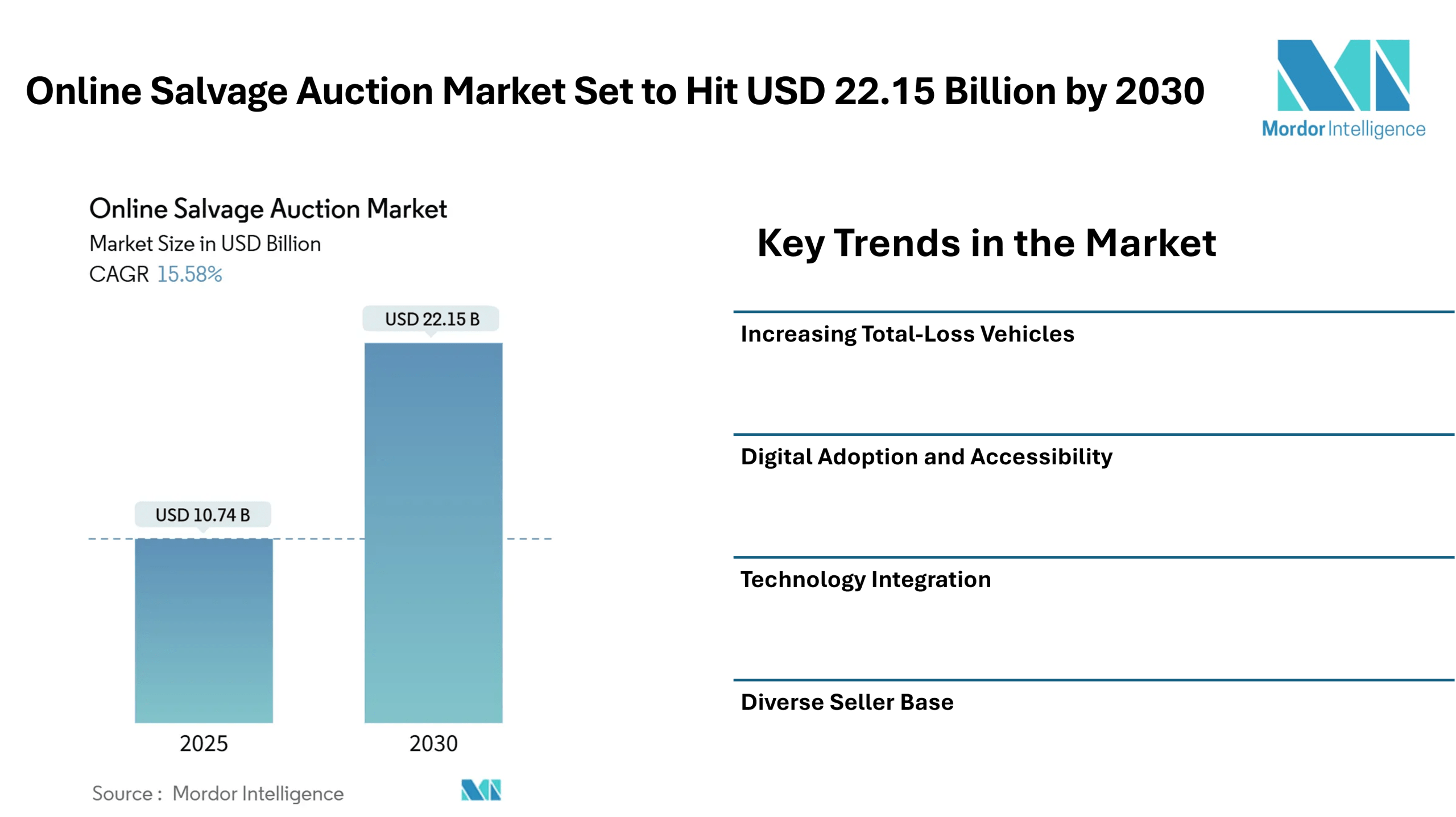 - Increasing Total-Loss Vehicles: Higher repair costs and complex vehicle electronics are contributing to rising total-loss rates, ensuring a steady supply of vehicles for online auctions.